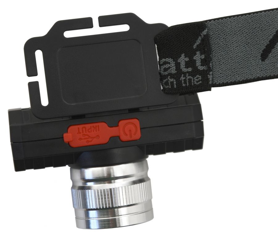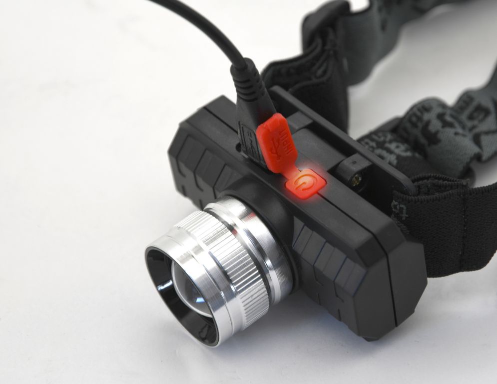 Źródłem światła jest bardzo jasna dioda LED Cree XP-E o jasności 90 lm, która wyposażona jest w odbłyśnik zwiększający wydajność optyczną. Latarka czołowa oferuje funkcję normalnego lub przyćmionego oświetlenia i migotania. Tryby można wygodnie przełączać, naciskając przycisk na dolnej części korpusu. Zasilanie zapewnia wbudowana bateria Li-Ion 18650. Ładowanie jest wtedy rozwiązywane za pomocą dołączonego kabla microUSB. Część przycisku zasilania to dioda LED ładowania, po zakończeniu ładowania czerwone światło zgaśnie. Korpus czołówki jest niewielki i lekki. Dodatkowo czołówka wyposażona jest w funkcję ZOOM, dzięki której można oddalić lub odwrotnie przybliżyć optykę, aby ustawić odpowiedni kierunek emitowanego światła. Długość paska jest regulowana, dzięki czemu latarka czołowa może być używana na każdej dużej głowie.
