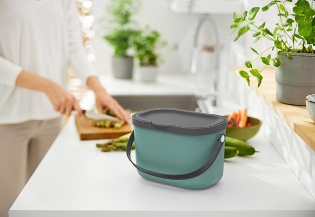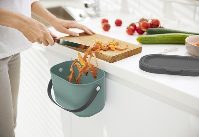 Wiszący kosz do wygodnego zbierania odpadów w kuchni. Łatwy do zawieszenia, nowoczesny design i praktyczny uchwyt do przenoszenia.