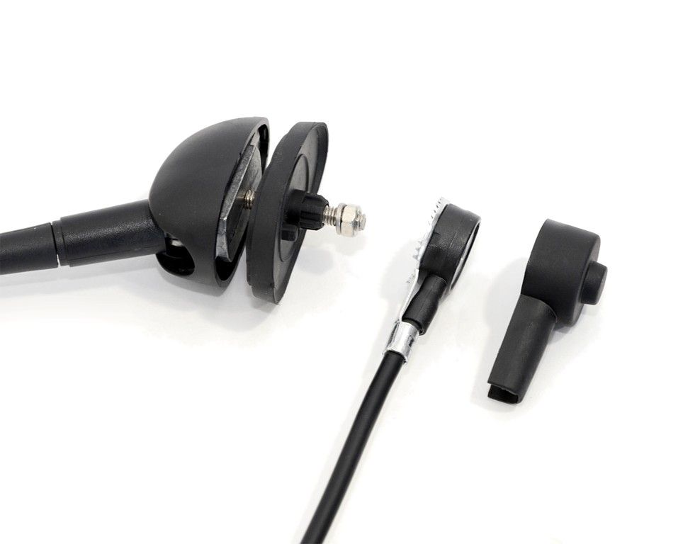 Antena dachowa przeznaczona do odbioru sygnału radiowego w samochodzie, składająca się z pręta śrubowego, gniazda montażowego i kabla zasilającego.