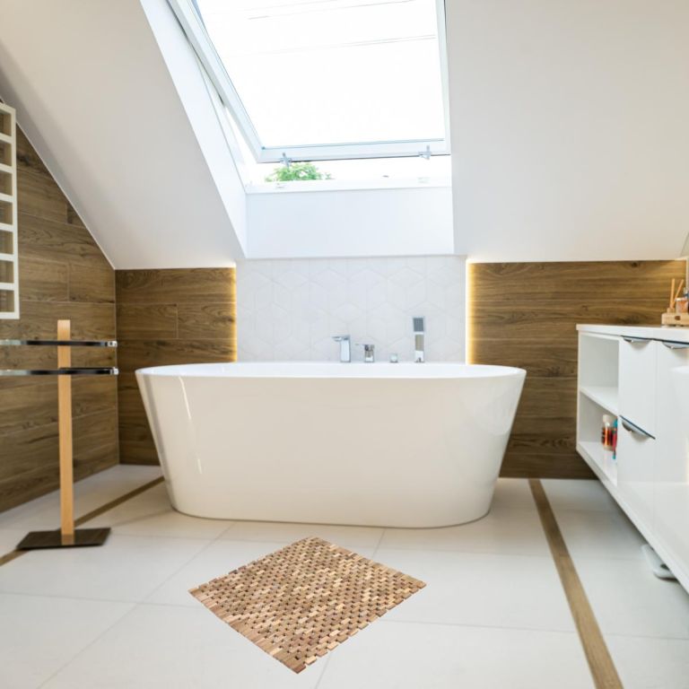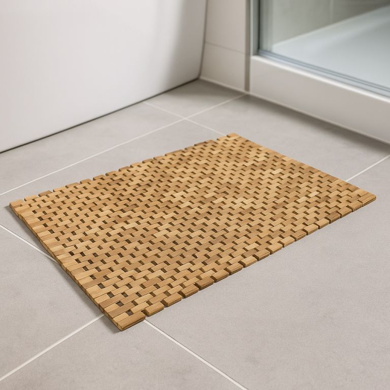 Naturalny styl do każdego pomieszczenia z tekową matą antypoślizgową z gumowymi podkładkami, które zapewniają bezpieczeństwo i unikalność dzięki ręczn