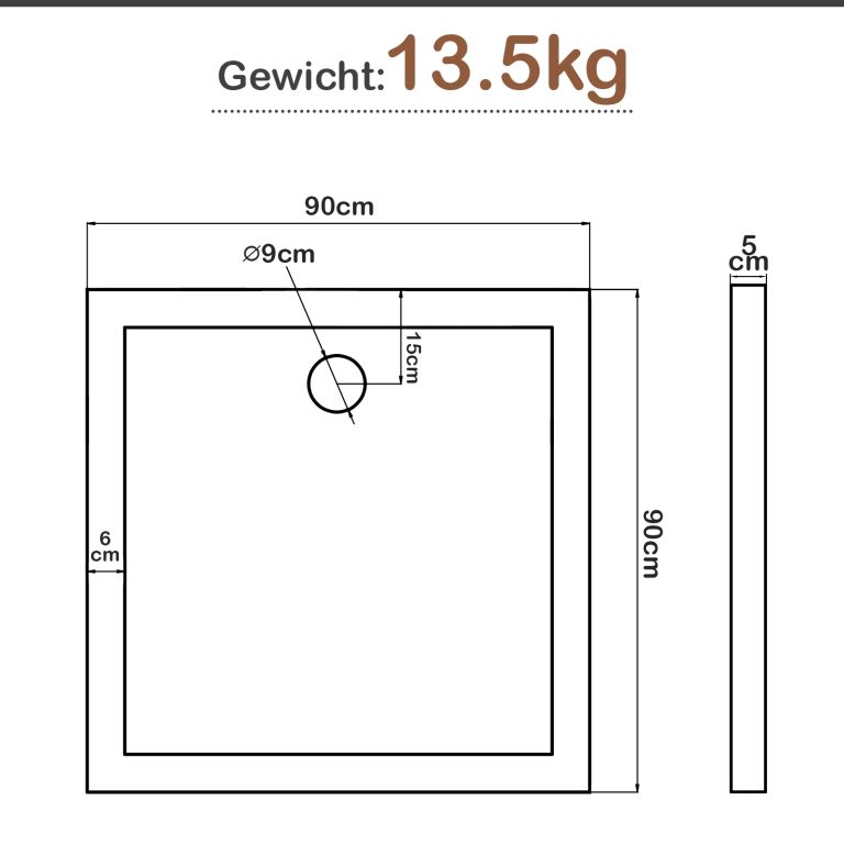 Ten konkretny model brodzika wykonany jest z solidnego akrylu i ma głębokość 4,5 cm, co ułatwia dostęp do prysznica. Stylowy i elegancki brodzik o bardzo cienkim profilu. Posiada łatwą do czyszczenia błyszczącą powierzchnię. Model ten należy podnieść 12 cm od podłogi. Montaż dwustronny - podstawa może być zamontowana zgodnie z wymaganiami.