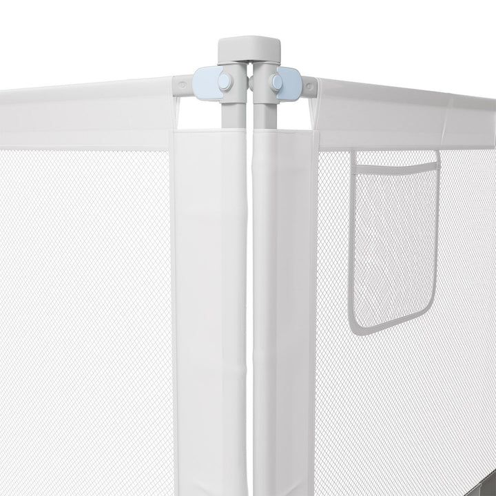 Solidna stalowa rama i odporna tkanina Oxford zapewniają trwałość i łatwość czyszczenia. Prosty montaż i możliwość łączenia z innymi barierkami zwiększają komfort użytkowania.