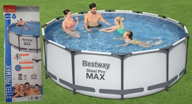 Ukazać szczegółowy opisBasen rodzinny Rodzinny z metalową konstrukcją, 366 x 100 cm, pojemność wody (90%) 9150 L + filtr ...