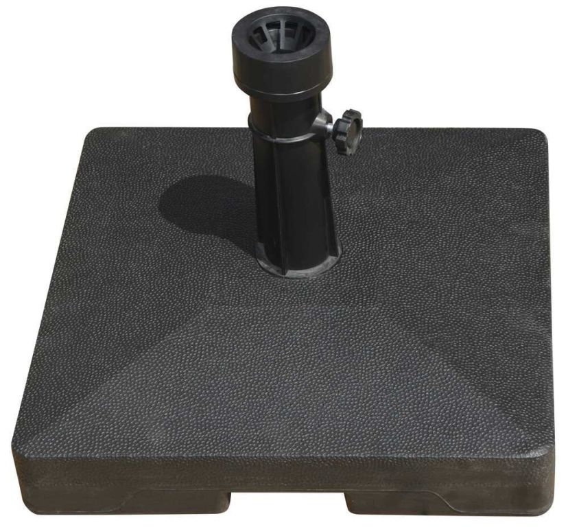 Ukazać szczegółowy opisKwadratowa betonowa podstawa pod parasol. Uchwyt parasola jest wyposażony w plastikowy adapter 49 mm.