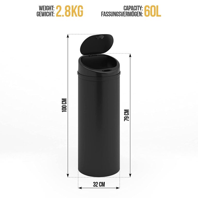 Bezdotykowy kosz na śmieci z czujnikiem, 60 l, czarny