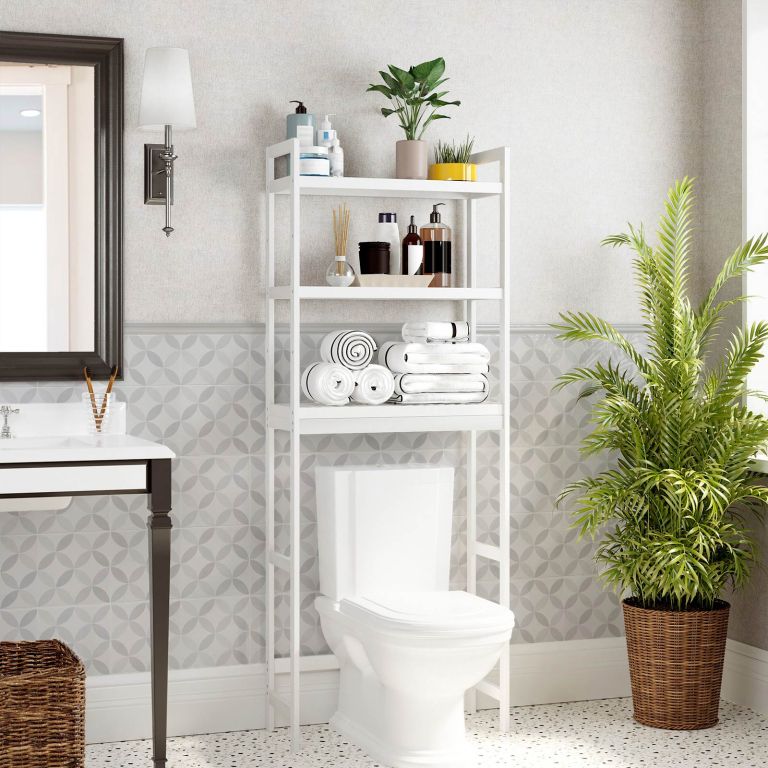 Wprowadź świeżość i porządek do swojej łazienki. Ta trzypoziomowa półka z bambusa w eleganckim białym kolorze oferuje dużo miejsca na wszystkie niezbędne akcesoria, nie zajmując przy tym dużo przestrzeni. Regulowane półki dopasują się do Twoich potrzeb – od małych kosmetyków po wysokie butelki szamponu.