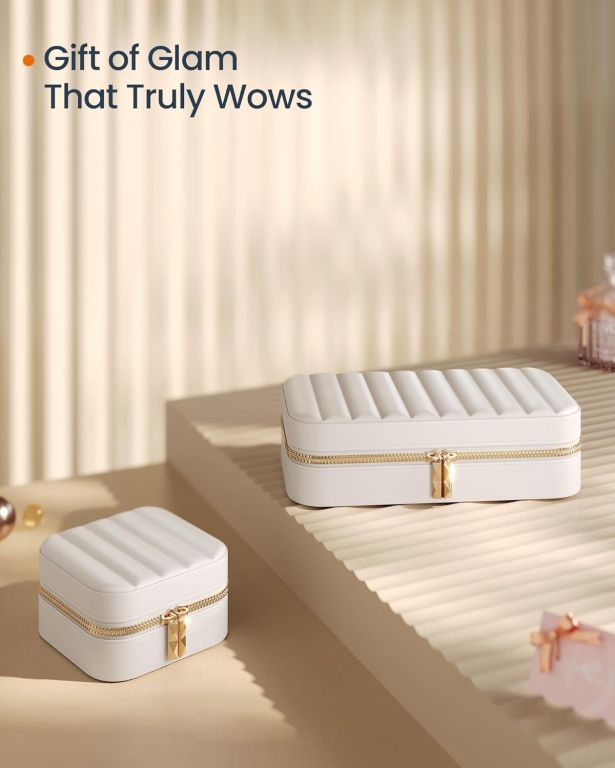 Podkreśl swój styl i zadbaj o porządek – ta elegancka szkatułka na biżuterię z lusterkiem to idealny dodatek dla każdej kobiety. Delikatne pikowanie i złote detale przyciągają wzrok i dodają luksusu.