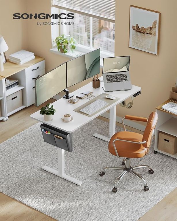 Duży blat 140 × 60 cm zapewnia miejsce na sprzęt i dokumenty. Regulacja wysokości od 72 do 120 cm oraz pamięć 4 pozycji gwarantują indywidualne dopasowanie. Stalowa rama i cichy silnik dbają o stabilność i komfort. Praktyczne dodatki pomagają utrzymać porządek na biurku.