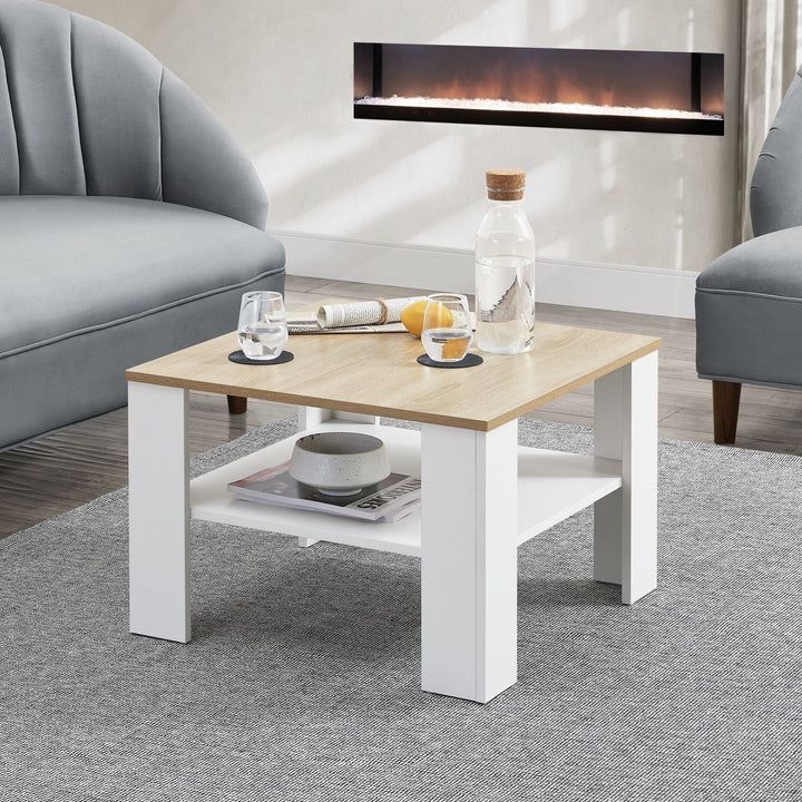 Biały stolik kawowy z półką, 60x60x45 cm, nowoczesny design