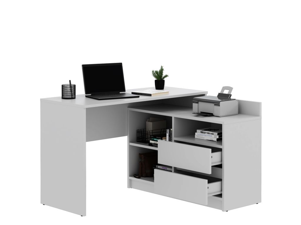Biurko narożne białe komputerowe z szufladami do pokoju