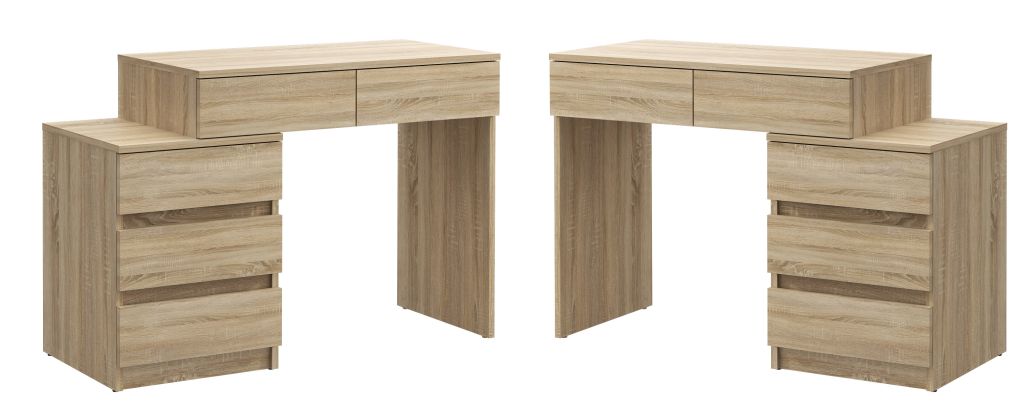 Wykorzystaj maksymalnie przestrzeń swojego pokoju dzięki dużemu, ergonomicznie zaprojektowanemu blatowi oraz aż pięciu pojemnym szufladom. Jedno biurko – dwie możliwości montażu: ustaw blat po prawej lub lewej stronie, w zależności od układu pomieszczenia.