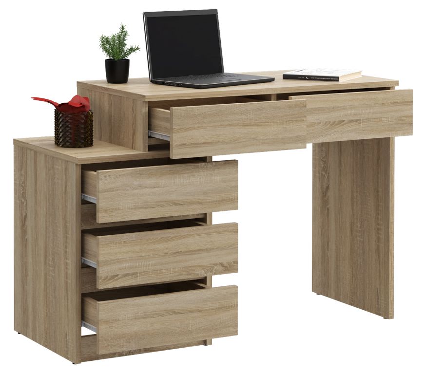 Wykorzystaj maksymalnie przestrzeń swojego pokoju dzięki dużemu, ergonomicznie zaprojektowanemu blatowi oraz aż pięciu pojemnym szufladom.