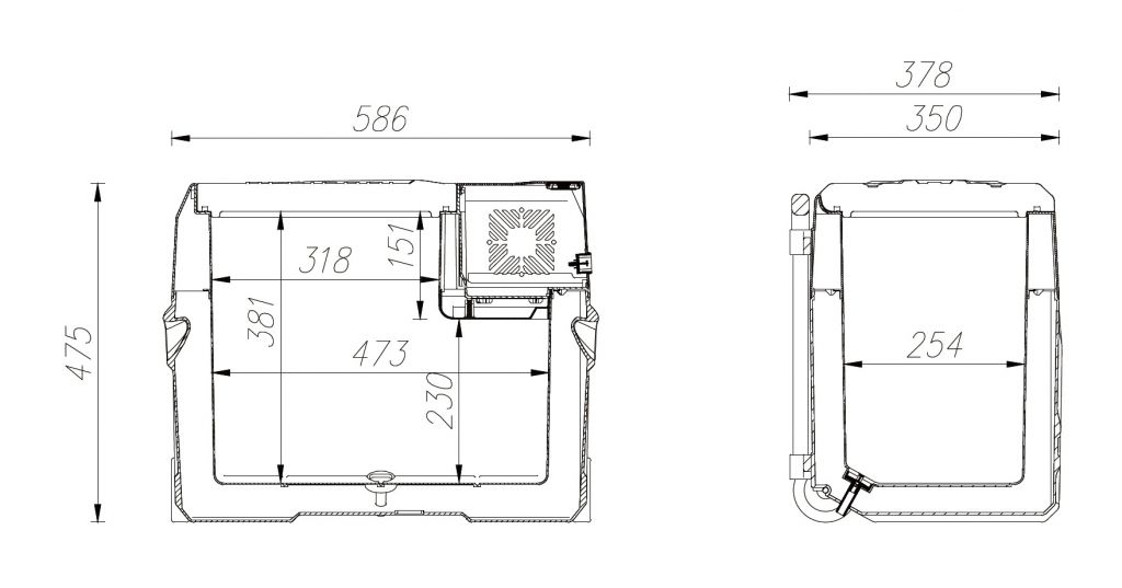 Skrzynia chłodnicza jest wyposażona w wydajną sprężarkę z czynnikiem chłodniczym i może być używana zarówno jako lodówka o temperaturze 0-10 ° C, jak i zamrażarka o temperaturze do -20 ° C. Chłodziarka oferuje tryb ECO dla oszczędności energii oraz tryb Hi do szybkiego chłodzenia zawartości do -20 ° C (przy temperaturze otoczenia 25 ° C). Jest również wyposażony w inteligentny system ochrony przed rozładowaniem podłączonego akumulatora i jest wyposażony w wyświetlacz z przyciskami do wygodnej obsługi. Doskonałą mobilność zapewniają boczne uchwyty, wysuwany uchwyt i koła. Obudowa zewnętrzna wykonana jest z trwałego, trwałego plastiku w szarym kolorze. W połączeniu z izolacją PU zapewniają długoterminowe utrzymanie stabilnej temperatury wewnątrz skrzynki i gwarantują bardzo niskie zużycie energii. Krawędź panelu sterowania uzupełnia zakryte gniazdo USB do zasilania urządzeń ze złączem USB.