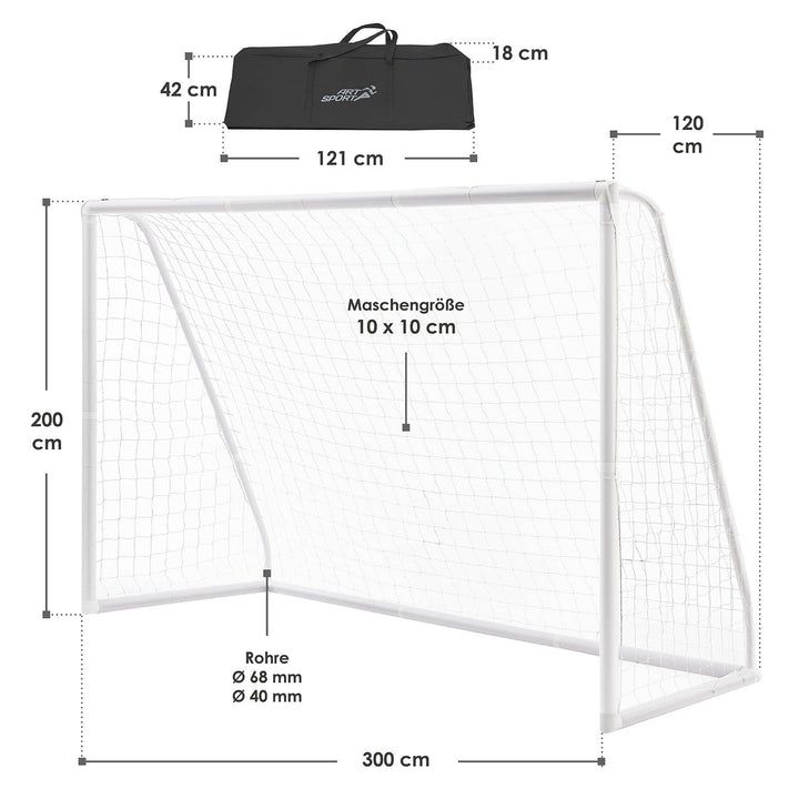 Bramka piłkarska 300x200 cm z torbą, szybki montaż, PVC