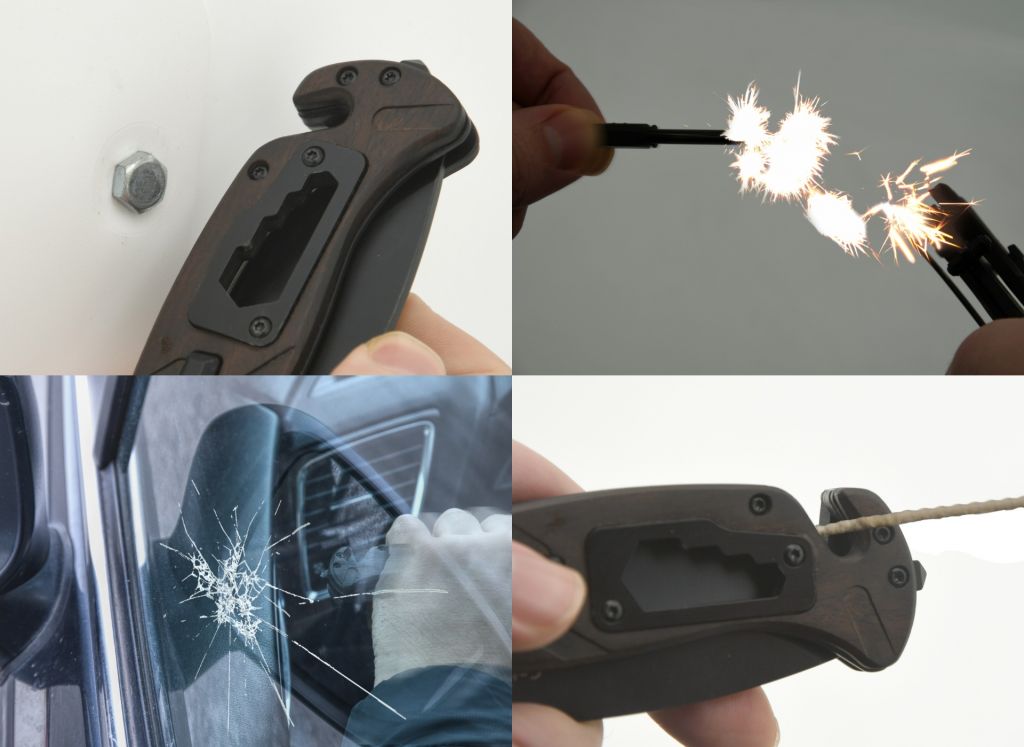 Ostrze noża wykonane jest ze stali tnącej SS420, materiał osiąga twardość HRC50-52. Powierzchnia ostrza jest pomalowana na czarno. Dzięki występom na górnej części ostrza lub występowi na dolnej stronie możliwe jest szybkie otwarcie noża jedną ręką. Nóż wyposażony jest w blokadę bezpieczeństwa, która sterowana jest bocznym ruchem kciuka w dolnej części rękojeści. Uchwyty rękojeści doskonale imitują drewno i są wygodne w trzymaniu. Nóż wyposażony jest w inne akcesoria do różnych zastosowań. Zawiera klucz do nakrętek 6/8/10/12 mm z przodu noża i tylny przecinak z tyłu, którego można używać jako krzesiwa lub gwizdka wraz z radełkowaną górną częścią ostrza.