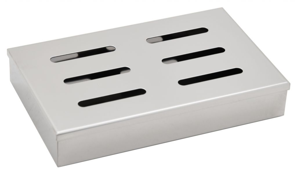 Praktyczne pudełko do wędzenia w klasycznym grillu lub dodawania wędzonego smaku potrawom z grilla. Pudełko ma wymiary 21 x 13 x 3,5 cm i jest wykonane ze stali nierdzewnej, z perforacją do stopniowego uwalniania zapachu z wiórów drzewnych.