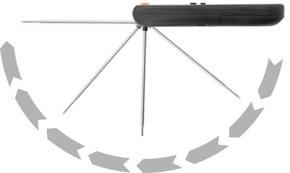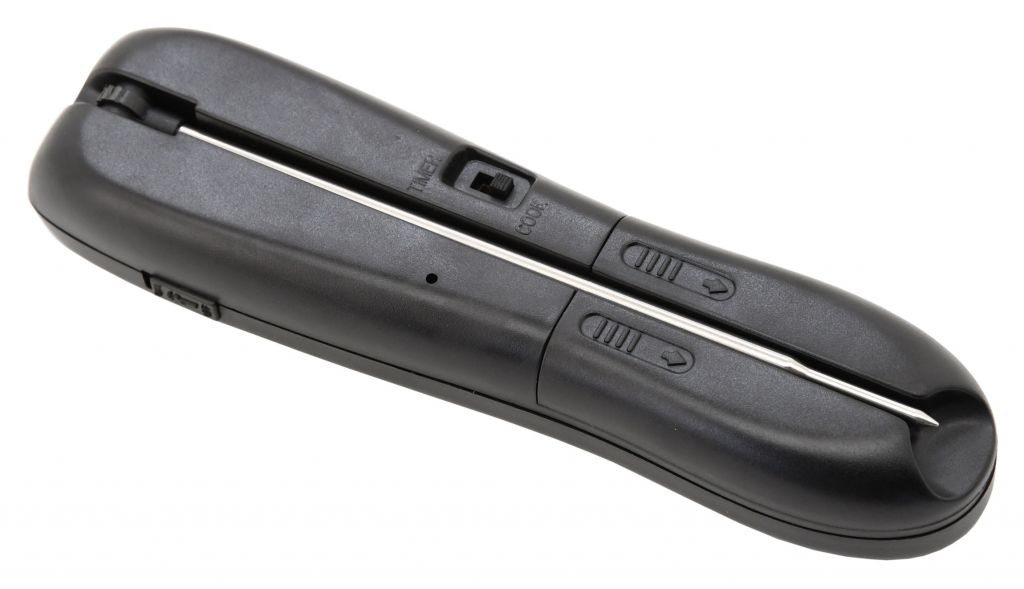 Praktyczny, składany pomocnik do grillowania, wyposażony w cyfrowy termometr lub timer oraz inteligentne, regulowane środowisko. Rodzaj mięsa i żądany stopień pieczenia można ustawić na urządzeniu, a nawet tryb USER do ustawienia dowolnej temperatury (wołowina, cielęcina, jagnięcina, wieprzowina, kurczak i indyk, burgery). Po osiągnięciu ustawionych temperatur urządzenie zaczyna sygnalizować dźwiękiem, a wyświetlacz miga. Urządzenie może być również używane jako timer do monitorowania osiągnięcia ustawionego czasu. Urządzenie dodatkowo wyposażone jest w latarkę LED do wieczornego oświetlania grilla. Zasilanie zapewniają 2 baterie AAA.