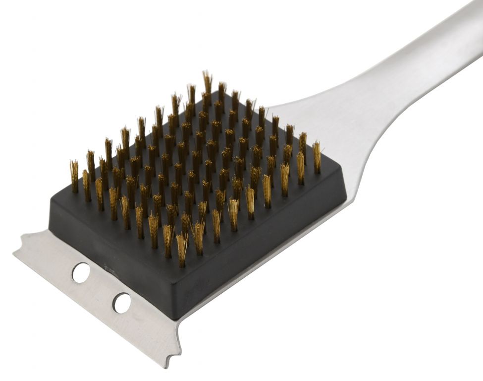 Wykonany z wysokiej jakości stali o grubości 1,8 mm. Z uchwytem wykonanym z żaroodpornego materiału z ergonomicznym kształtem w kolorze szarego rekina. Końcówka wyposażona jest w haczyk do zawieszenia. Narzędzie wyposażone jest w skrobak z ostrzem 7,5 cm z przodu oraz mosiężną szczotkę o wymiarach 6,5 x 5 cm. Narzędzie może być używane głównie w domu do grillowania, ale także na obozie i gdzie indziej na łonie natury.