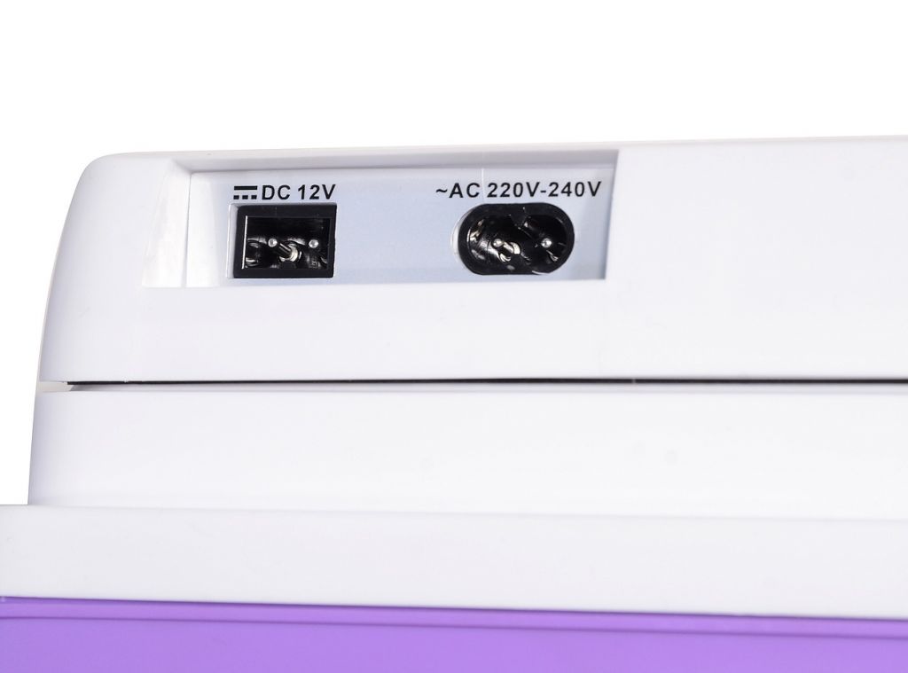 Przenośna chłodziarka, zasilanie 12V i 230V, objętość wewnętrzna. Kabel z wtyczką do gniazda zapalniczki samochodowej 12V i kablem 230 V.