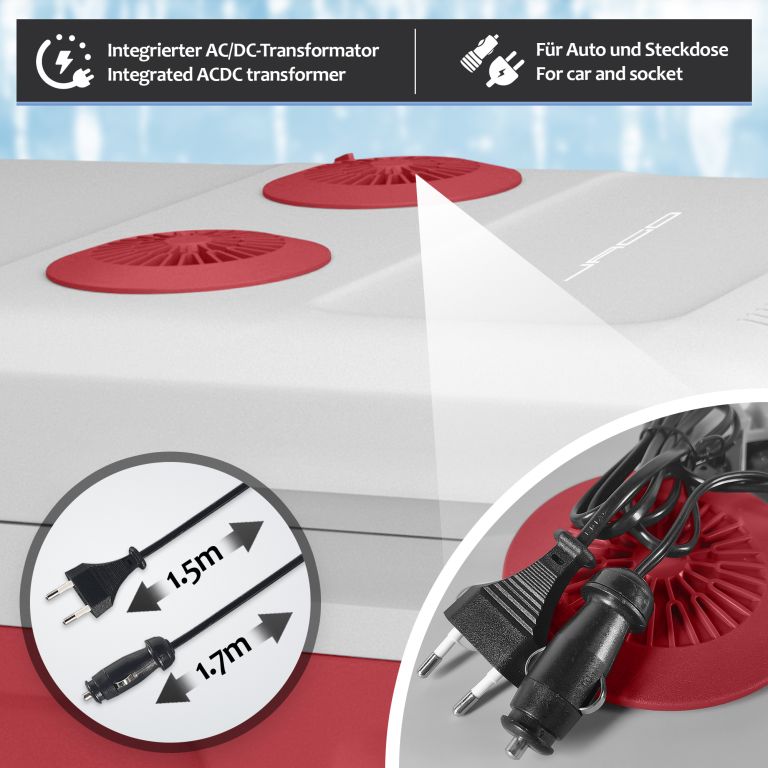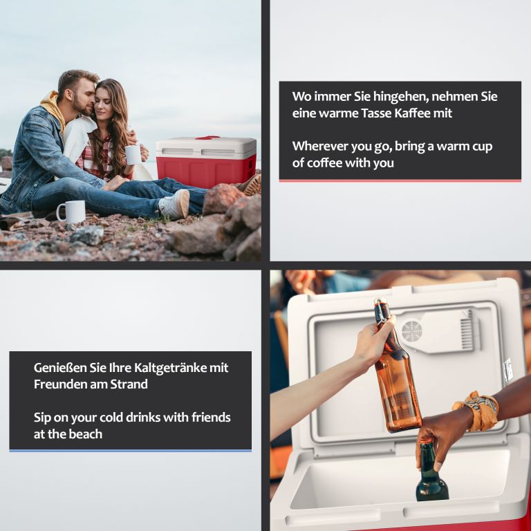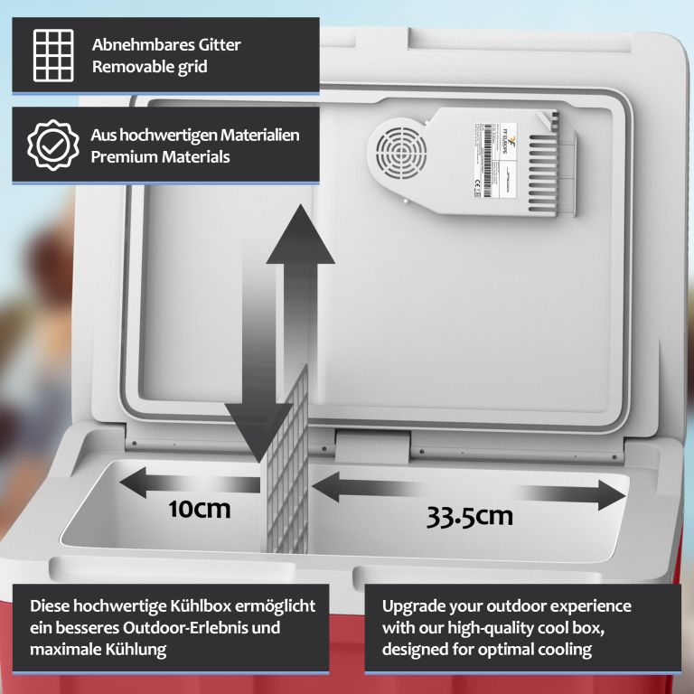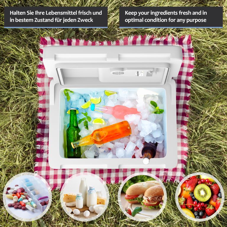 Nasza lodówka oferuje dwie różne funkcje: chłodzenie i ogrzewanie. Dzięki temu napoje mogą być chłodne i świeże, a jedzenie i przekąski ciepłe przez wiele godzin. Wbudowany uchwyt ułatwia przenoszenie. Zawiera wkładkę z siatki dla lepszej organizacji przestrzeni do przechowywania. Miej wszystkie przekąski i napoje pod ręką i ciesz się ulubionymi zajęciami na świeżym powietrzu!