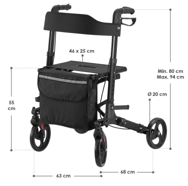 Wysokiej jakości aluminiowa rama zapewnia lekkość i trwałość, a składana konstrukcja umożliwia łatwe przechowywanie. Regulowane rączki i hamulce gwarantują bezpieczeństwo oraz wygodę użytkowania w każdych warunkach.