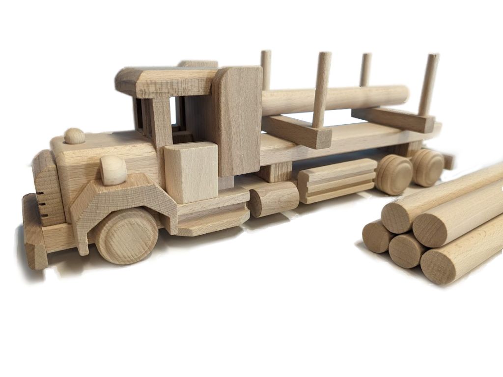 Ukazać szczegółowy opisNaturalna ciężarówka z buku, wyjmowane kłody, trwała i bezpieczna dla dzieci.