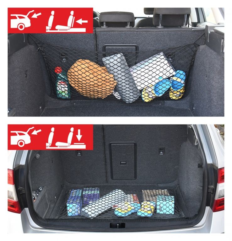 Elastyczna siatka mocująca do wnętrza samochodu, rozmiar 50 x 90 cm, odpowiednia do łatwego zabezpieczenia bagażu, zakupów itp. Idealna do mocowania przedmiotów na dnie bagażnika lub na tylnych siedzeniach samochodu. Dzięki swojej elastyczności może być również stosowana do zabezpieczenia większych przedmiotów. Siatka zabezpiecza w ten sposób przestrzeń bagażową przed przemieszczaniem się tych przedmiotów podczas jazdy.