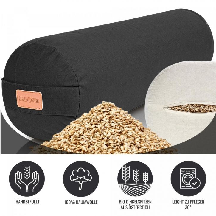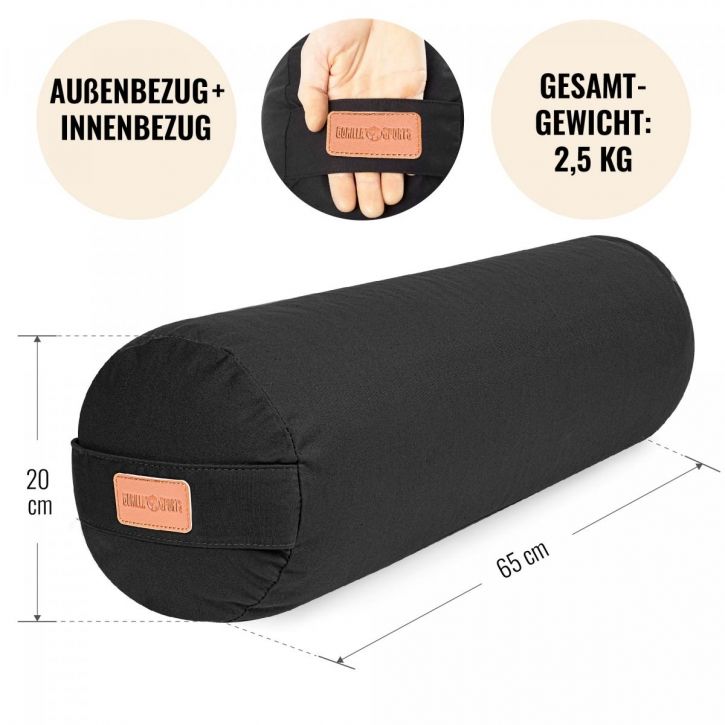 Czarna poduszka do jogi i medytacji 65x20 cm, bawełna, łuski