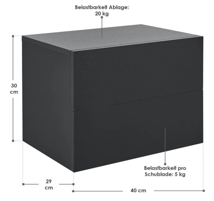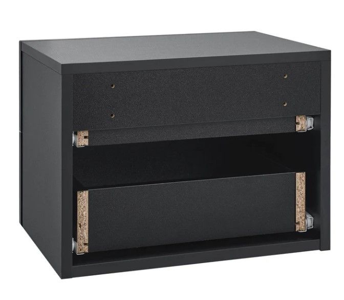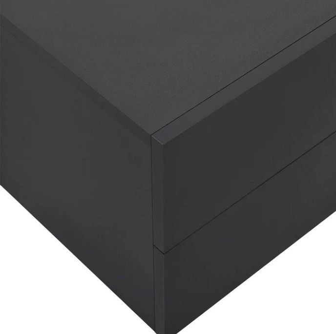 Ukazać szczegółowy opisWisząca szafka nocna z 2 szufladami, czarna, idealna do nowoczesnych wnętrz.