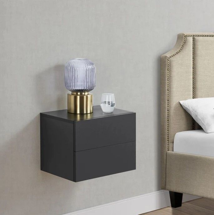 Wisząca szafka nocna z 2 szufladami, czarna, idealna do nowoczesnych wnętrz.