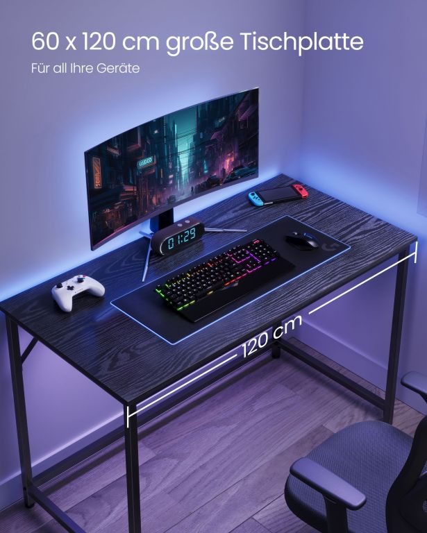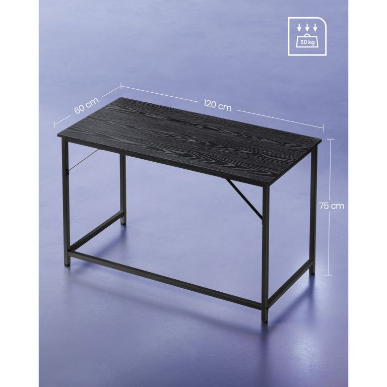 Czarne biurko 120x60 cm, stalowy stelaż, idealne do biura i pokoju młodzieżowego.
