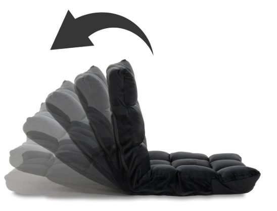 Czarny fotel podłogowy Relax Lounger, welur, 5 pozycji