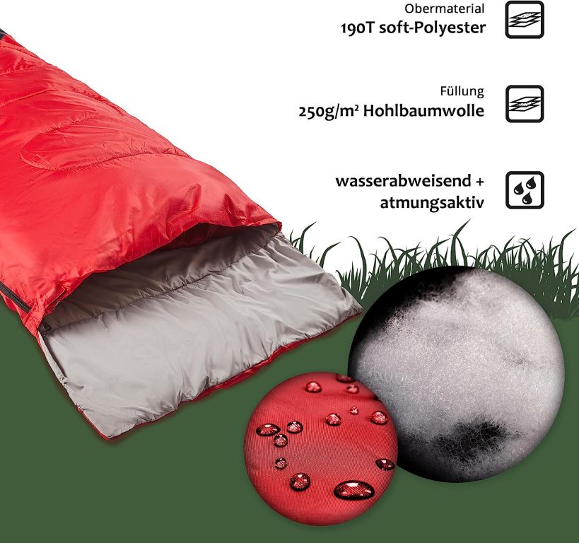 Czerwony śpiwór anaterra Avontuur 220x75 cm, wodoodporny