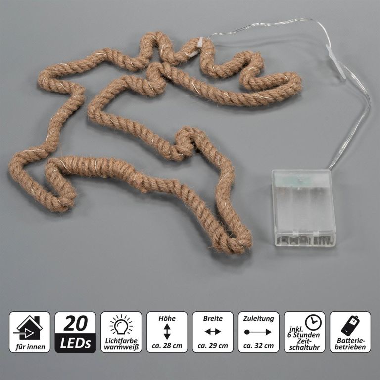 Dekoracja okienna, która może być używana na wiele sposobów, np. na okna, drzwi lub ściany – świąteczna dekoracja, która wprowadzi świąteczną atmosferę do Twoich pomieszczeń. Dzięki zasilaniu na baterie, nie musisz martwić się o dostęp do gniazdka, dzięki czemu można je umieścić w różnych miejscach. Wbudowany praktyczny timer, który ustawia światło na 6 godzin, po czym następuje przerwa trwająca 18 godzin. Dzięki temu nie musisz codziennie zapalać świateł przy zmierzchu ani pamiętać, by wyłączyć je w środku nocy. Możliwość wyboru funkcji timera lub ciągłego świecenia. Stopień ochrony IP20 zapewnia bezpieczeństwo i jest przeznaczony wyłącznie do użytku wewnętrznego. Oszczędne 20 diod LED zapewnia niskie zużycie energii.