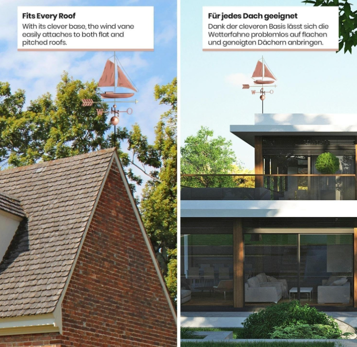 Odmień wygląd swojego domu dzięki dekoracyjnej miedzianej wiatrowskazowi w kształcie żaglówki. To nie tylko piękna ozdoba, ale także praktyczne rozwiązanie chroniące dach przed ptakami. Symbol wolności i elegancji doda Twojemu domowi wyjątkowego charakteru.