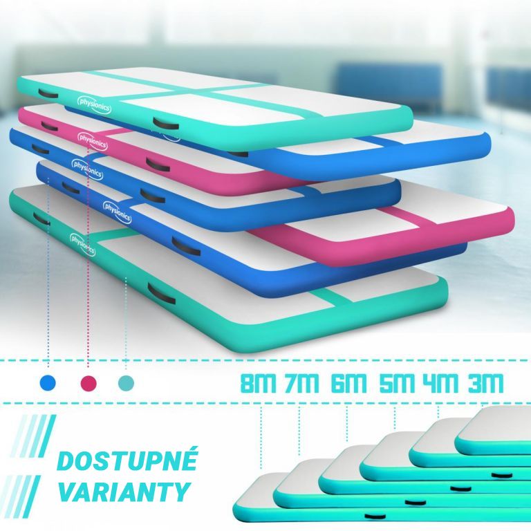 Dmuchana mata gimnastyczna to uniwersalne narzędzie treningowe odpowiednie do szerokiej gamy zajęć sportowych, takich jak gimnastyka, cheerleading, parkour, sztuki walki, sporty szkolne i inne. Istnieje również możliwość korzystania z niego w basenie. Mata ta wykonana jest z materiału dwuściennego, którego główną właściwością jest zachowanie kształtu i stabilności konstrukcji pod wpływem zewnętrznego nacisku i uderzenia.