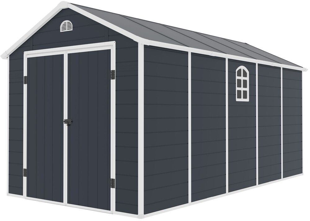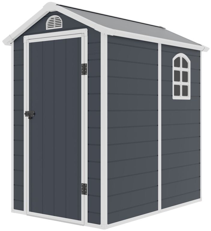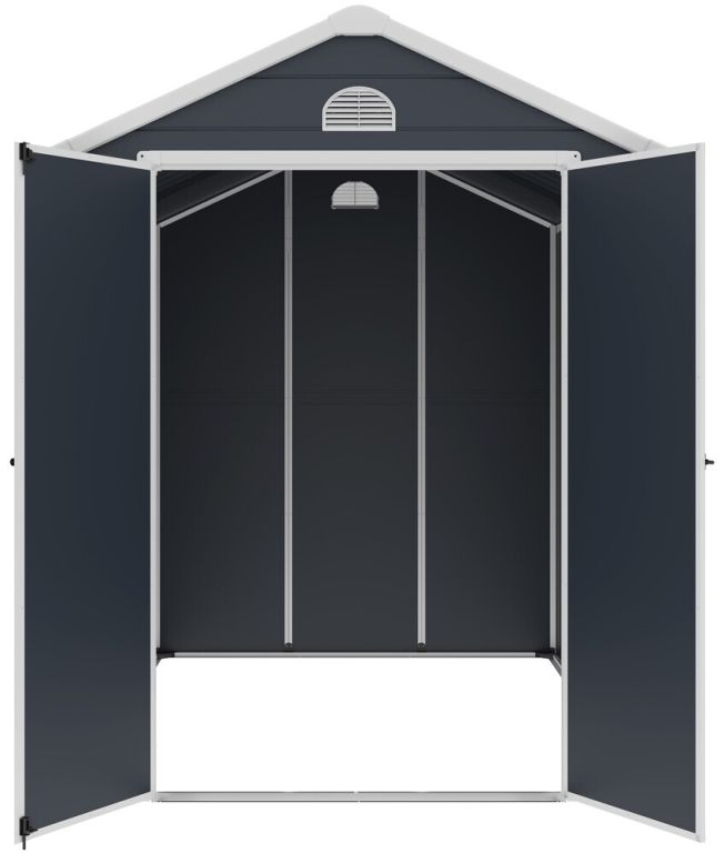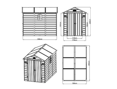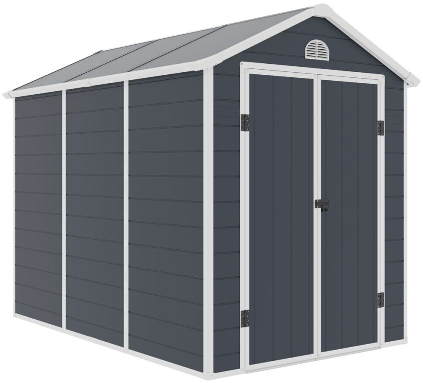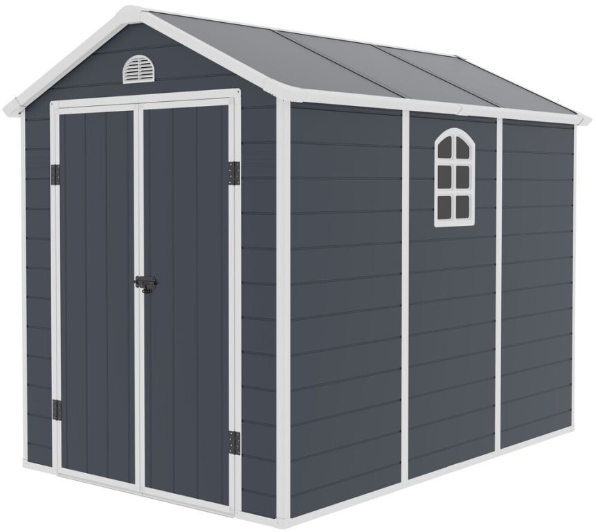 Domek ogrodowy AVE może służyć do przechowywania narzędzi ogrodowych, rowerów, kosiarek, akcesoriów basenowych, drewna itp. Domek ogrodowy o nowoczesnym designie pasuje do każdego ogrodu. Domek ogrodowy wykonany jest z wysokiej jakości tworzywa sztucznego - lekkiego i wytrzymałego jednocześnie. Plastikowe słupki o grubości materiału 1,5 mm, zewnętrzne plastikowe panele o grubości 12 mm i metalowe wzmocnienia gwarantują wystarczającą wytrzymałość. Okno zapewnia wystarczający dopływ światła do wnętrza domu. Okno można łatwo umieścić po prawej lub lewej stronie domu, w zależności od potrzeb. Kratka wentylacyjna zapewnia wentylację i cyrkulację powietrza wewnątrz domku. Domek można zabezpieczyć kłódką. Domek zawiera ramę konstrukcyjną, którą można oczywiście zakotwiczyć do podstawy. Istnieje również możliwość zakupu konstrukcji podłogowej. Maksymalne obciążenie śniegiem dachu wynosi 60 kg/m2. Ochrona UV i odporność na warunki atmosferyczne. Prosty montaż.