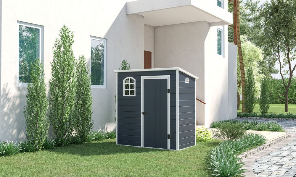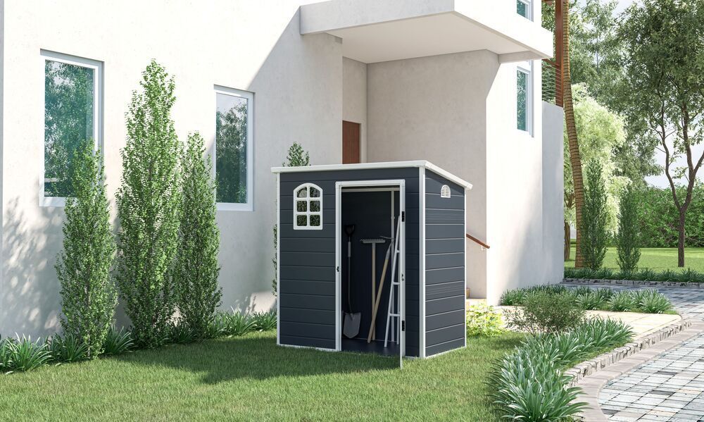 Domek ogrodowy BECK może służyć do przechowywania narzędzi ogrodowych, rowerów, kosiarek, akcesoriów basenowych, drewna itp. Domek ogrodowy o nowoczesnym designie nadaje się do każdego ogrodu. Domek ogrodowy wykonany jest z wysokiej jakości tworzywa sztucznego - lekkiego i wytrzymałego jednocześnie. Plastikowe słupki o grubości materiału 1,5 mm, zewnętrzne plastikowe panele o grubości 12 mm i metalowe wzmocnienia gwarantują wystarczającą wytrzymałość. Okno zapewnia wystarczający dopływ światła do wnętrza domu. Kratka wentylacyjna zapewnia wentylację i cyrkulację powietrza wewnątrz domku. Domek można zabezpieczyć kłódką. Domek zawiera ramę konstrukcyjną, którą można oczywiście zakotwiczyć do podstawy. Istnieje również możliwość zakupu konstrukcji podłogowej. Maksymalne obciążenie dachu śniegiem wynosi 60 kg/m2. Ochrona UV i odporność na warunki atmosferyczne. Prosty montaż.