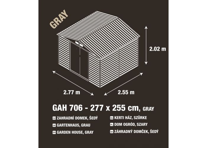 Domek ogrodowy G21 GAH 706 - 277 x 255 cm, szary