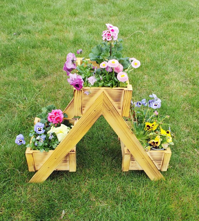 Ukazać szczegółowy opisDrewniana donica z opalanym wykończeniem, gotowa do użycia, do wnętrz i na taras.