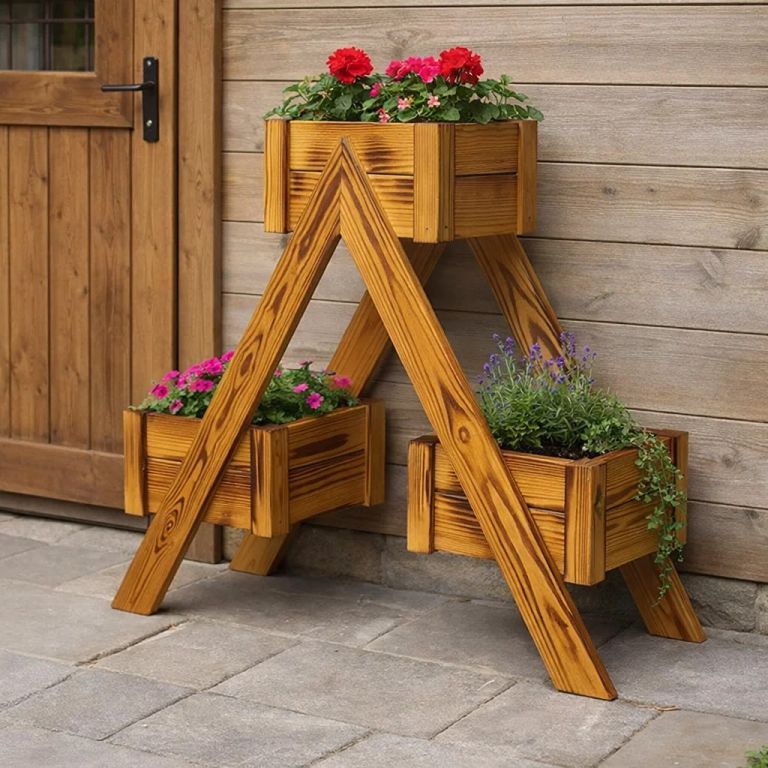 Drewniana donica z opalanym wykończeniem, gotowa do użycia, do wnętrz i na taras.