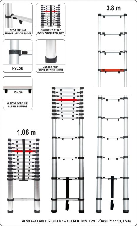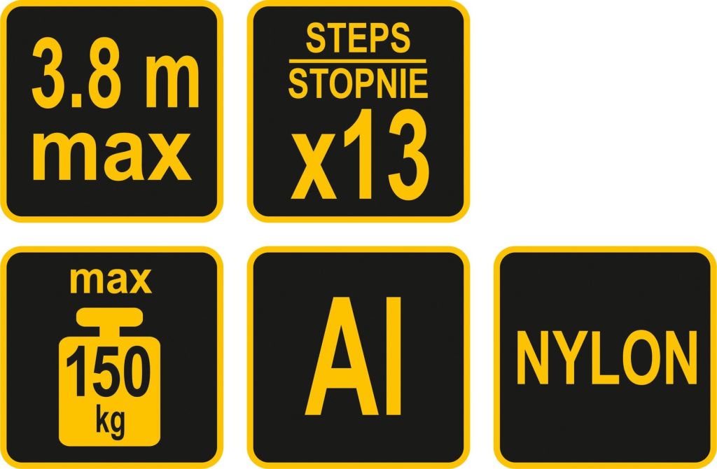 Drabina teleskopowa 13 stopni 3,8 m, nośność 150 kg