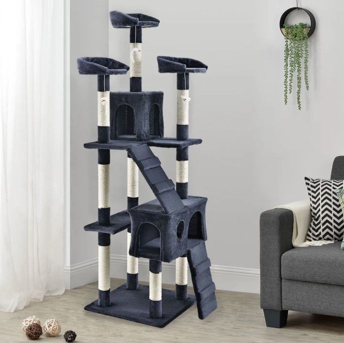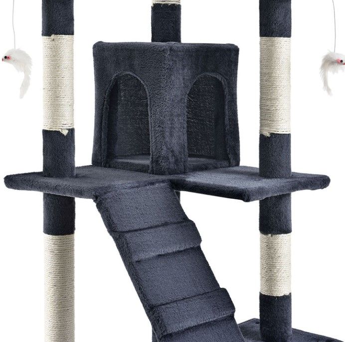 Drapak Amy to idealne rozwiązanie dla każdego kota, który potrzebuje miejsca do zabawy i relaksu. Dwa domki i trzy platformy zapewniają komfort i bezpieczeństwo, a myszki na sznurkach gwarantują codzienną zabawę.