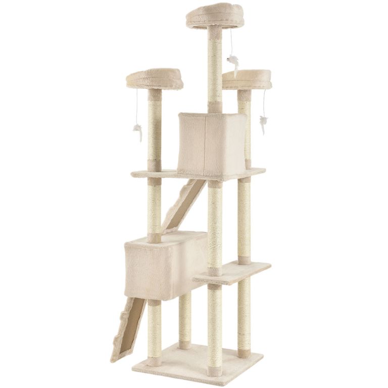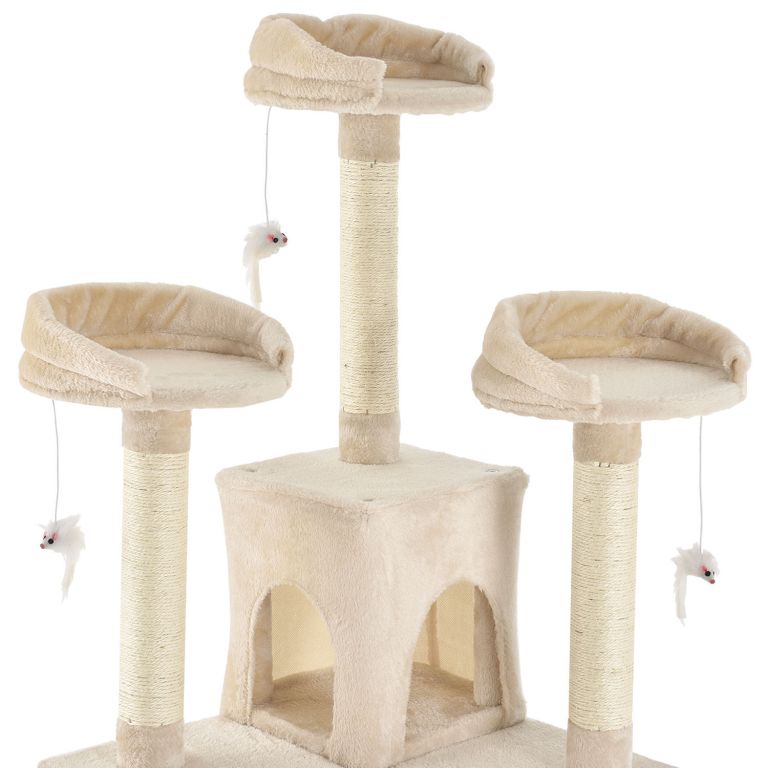 Wielopoziomowy drapak oferuje legowiska, budki, myszki do zabawy oraz sizalowe słupki – idealny do mniejszych mieszkań.