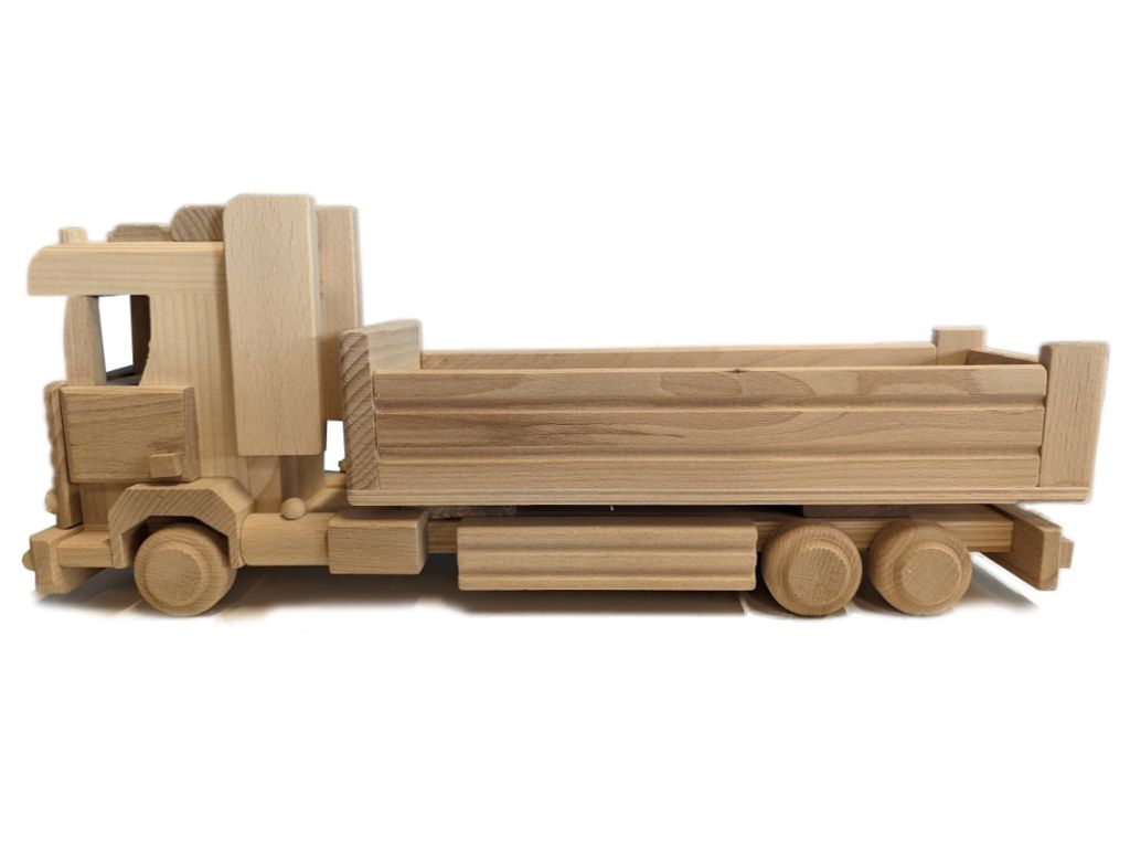 Drewniana ciężarówka z buku, bez lakieru, 48x12x19 cm