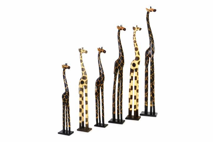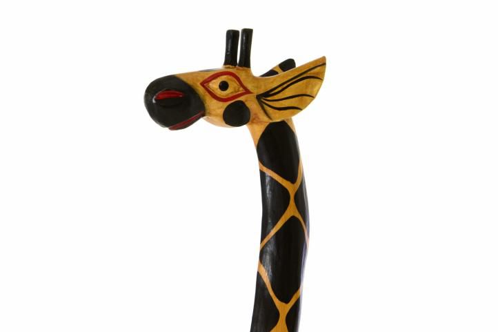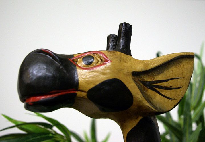 Ukazać szczegółowy opisrzeżba żyrafy indonezyjskiej z drewna z zachowaniem detali