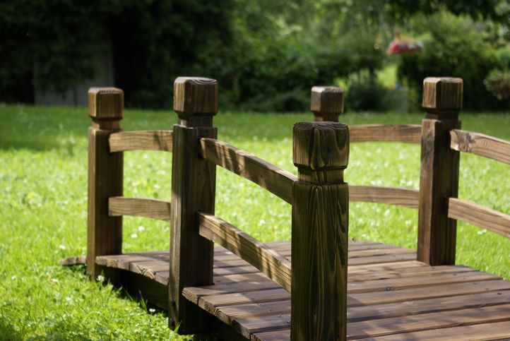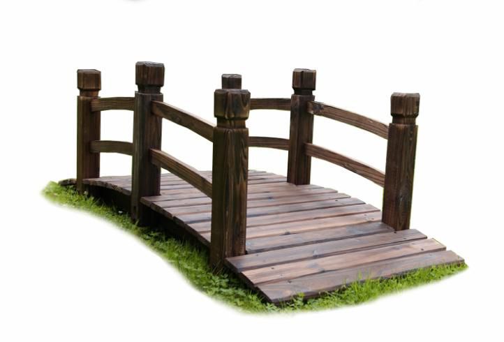 Niepowtarzalna drewniana kładka, wykonana z drewna sosnowego w kolorze brązowym. Idealna do dekoracji małych potoków i rowów. Doskonała ozdoba pomiędzy kwiatami, przy oczku wodnym lub w każdym innym miejscu. Zaletą jest również łatwy montaż.