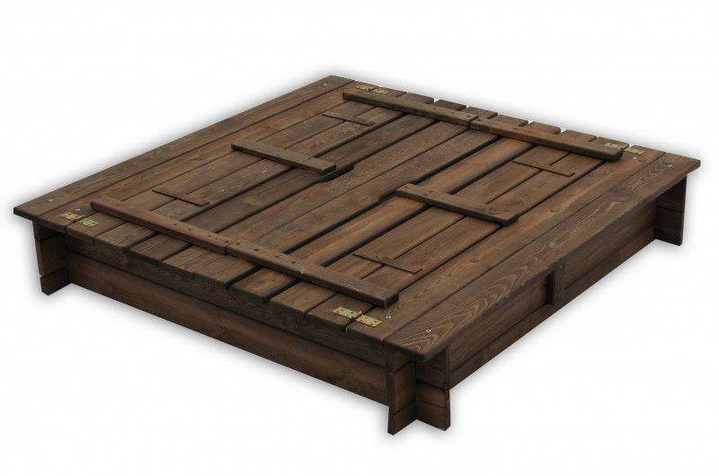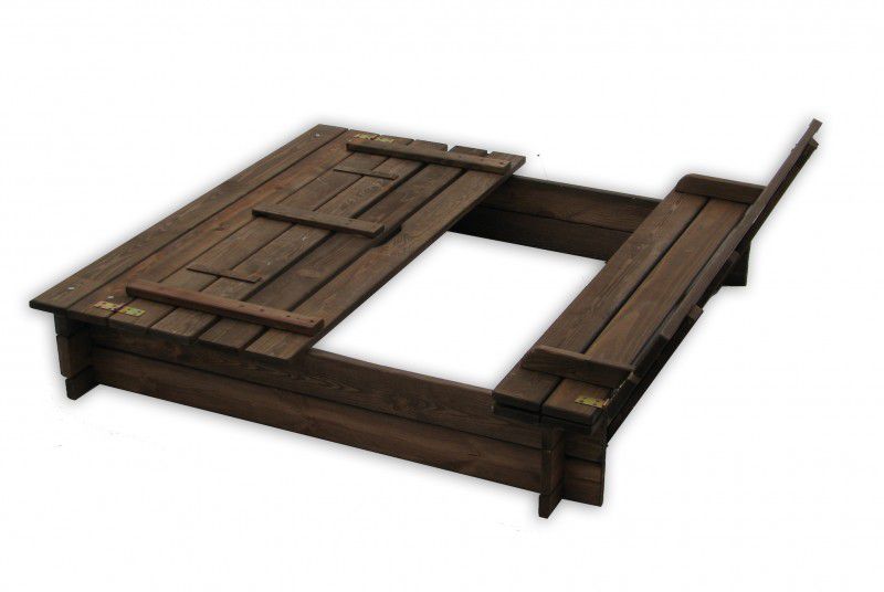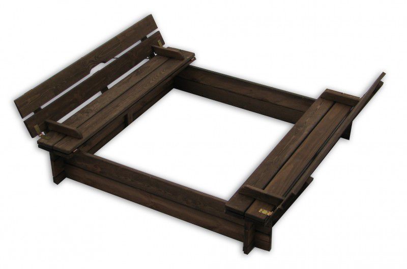 Kwadratowa piaskownica z ławkami. Wykonany z drewna sosnowego (impregnowanego). Z ławek możesz łatwo stworzyć pokrywę piaskownicy! Ta piaskownica zawiera rozrywkę dla najmłodszych, siedzenie i praktyczne zamknięcie.