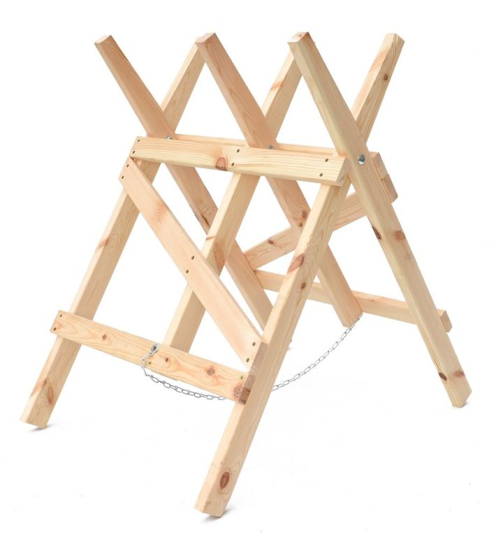 Składany stojak do cięcia drewna z certyfikatem FSC. Wytrzymały, łatwy w przechowywaniu i transporcie.