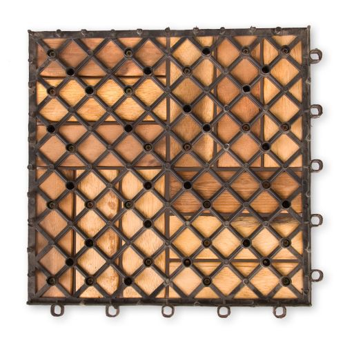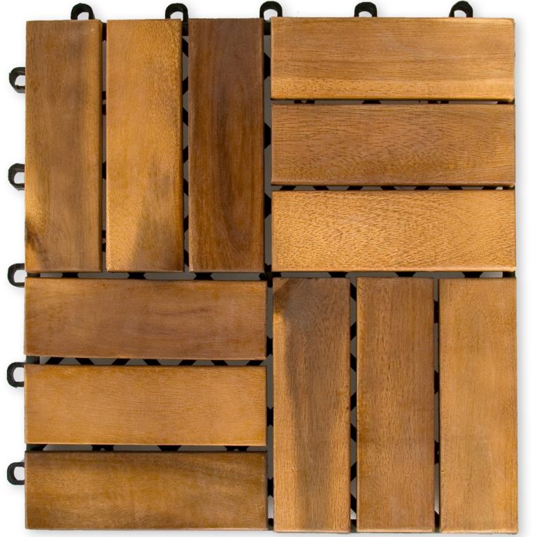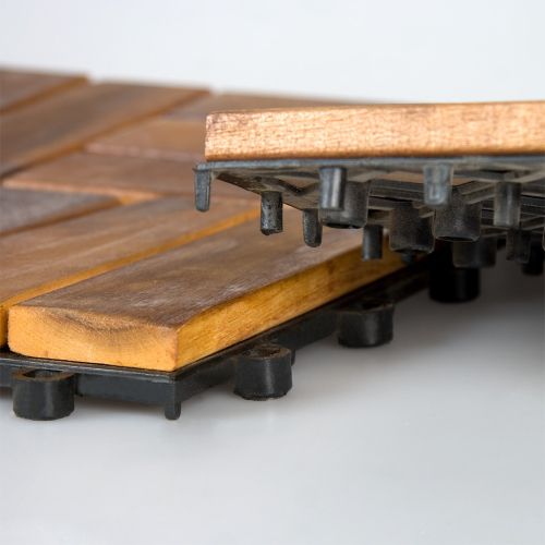 11 sztuk płytek drewnianych z drewna akacjowego. Szkielet nośny z PVC służy do mocowania elementów drewnianych ze sobą wzajemnie oraz zapewnia odpowiednią cyrkulację powietrza i wody pod elementami drewnianymi. Akacja jest na tyle wytrzymałym drewnem, że nawet bez dodatkowego zabezpieczania jest odporna na warunki atmosferyczne oraz grzyby, jednak zaleca się stosowanie olejów zabezpieczających do drewna egzotycznego. Płytki przeznaczone są do stosowania wewnątrz i na zewnątrz, np. balkon, taras, sauna, basen, łazienka, itp.